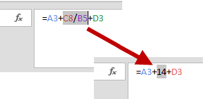 Tarkistat kaavassa olevan lausekkeen arvon maalaamalla lausekkeen ja painamalla F9. Poistuthan kaavasta tämän jälkeen Esc-näppäimellä, jottet muuta lauseketta pysyvästi.