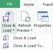 Jos valitset vaihtoehdon Close & Load (Sulje ja lataa), tiedot latautuvat joko Exceliin tai Power Pivotiin siitä riippuen, millaiset kyselyasetukset olet määrittänyt Excelin puolella. Valitsemalla Close & Load To (Sulje ja lataa kohteeseen) pääset valitsemaan oletusasetuksesta poikkeavan latauskohteen.