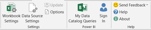 Loput välilehden toiminnot liittyvät työkirjan ja ylipäätään erilaisten tietolähteiden asetuksiin sekä ohjeisiin.
