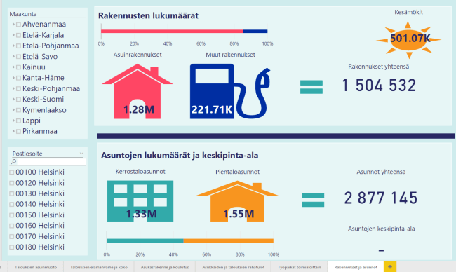 PAAVO sekä jakamani Power BI -visualisointikokonaisuus sisältää seuraavat vuonna 2020 julkistetut tietojoukot