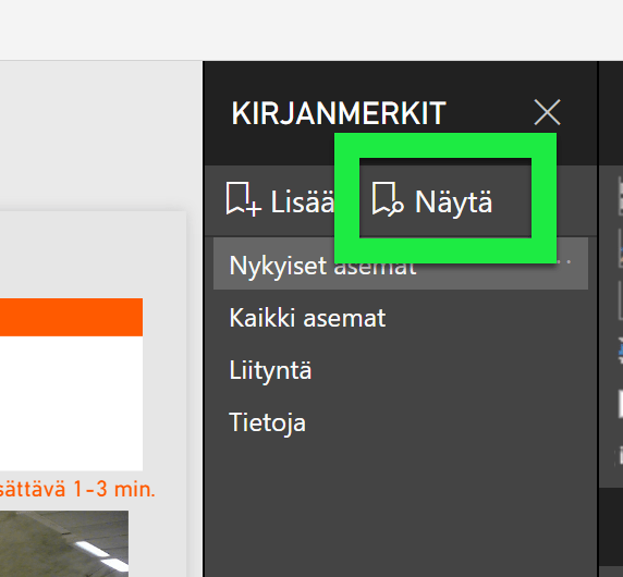Kirjanmerkin aktivointi painikkeella