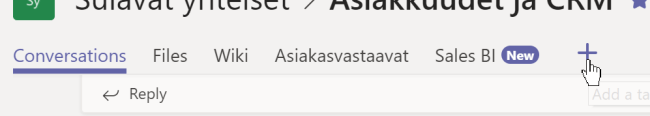 Rajoitukset: Voit lisätä vain raportteja. Jos lisäät jotain muuta sisältöä kuten koontinäyttöjä Sivusto (Website) -tyyppisenä välilehtenä, sisältö ei välttämättä näy Teamsin selain- tai mobiiliversiossa eikä välttämättä skaalaudu näytöllä oikein. Testaa itse miten sivusto-tyyppinen välilehti toimii juurin nyt esim. mobiilisti. Et pysty lisäämään Teams-kanavaan raporttia, joka on jaettu sovelluspaketoinnin osana vaan raportti pitää sovelluksen lisäksi jakaa myös pikajakona.